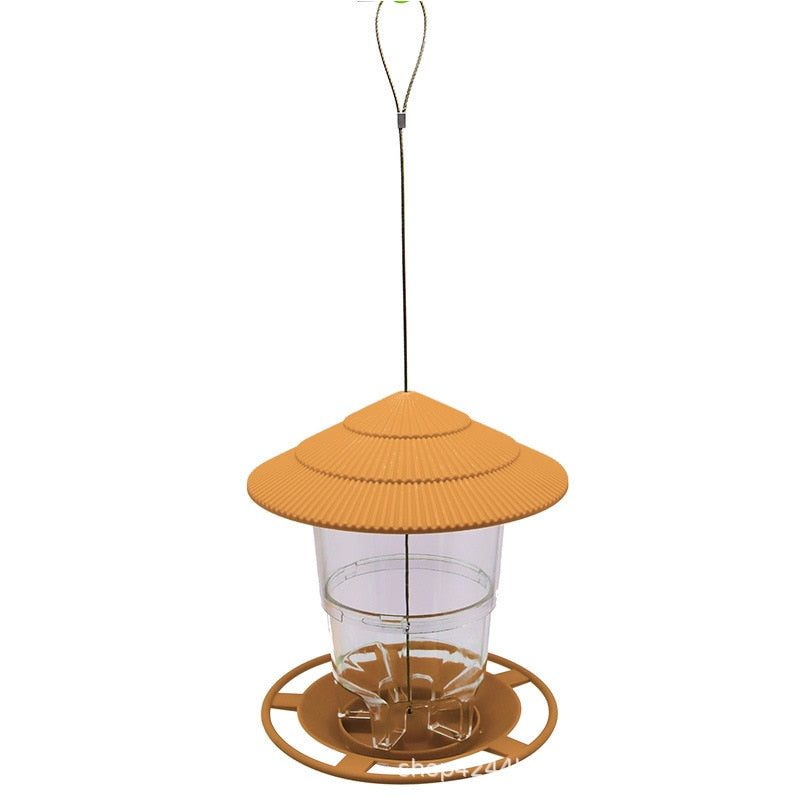 Excelente design circular tem um telhado inclinado para sombrear pássaros do sol e da chuva. O alimentador plástico claro do pássaro ajuda você a saber quando encher. Alta qualidade, ótimo para uso duradouro.